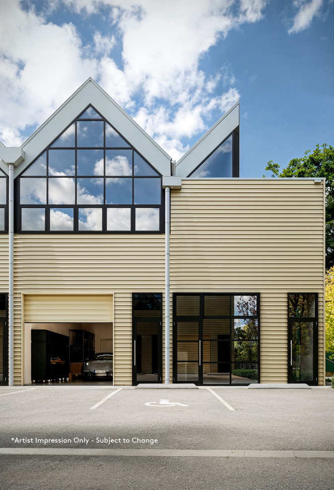 Modern, flexible workspaces combining ground-floor storage or showroom with light-filled office space above.